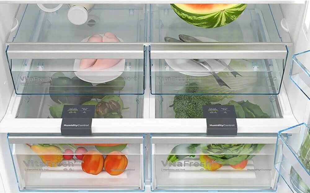 За стабильный микроклимат и свежесть отвечают технологичные системы. Вентиляция MultiAirflow равномерно распределяет холод по всем уровням, в то время как зона свежести VitaFresh plus помогает дольше сохранять продукты в оптимальных условиях. В морозильной части на случай большого привоза предусмотрена функция суперзамораживания SuperFreezing и вместительный ящик BigBox.
