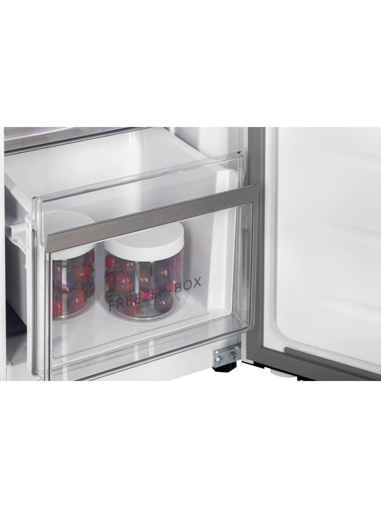 Глубина холодильника 60 см позволяет свободно встроить его в кухонный гарнитур. При этом необходимо обеспечить всего 6 мм минимального расстояния от техники до кухонных шкафов. В модели предусмотрена система нижнего отвода тепла, за счет которой стенки соседних шкафов не будут нагреваться. Благодаря обновленной дверной конструкции и специальным петлям двери холодильника открываются на 90 градусов, обеспечивая удобный доступ к продуктам.