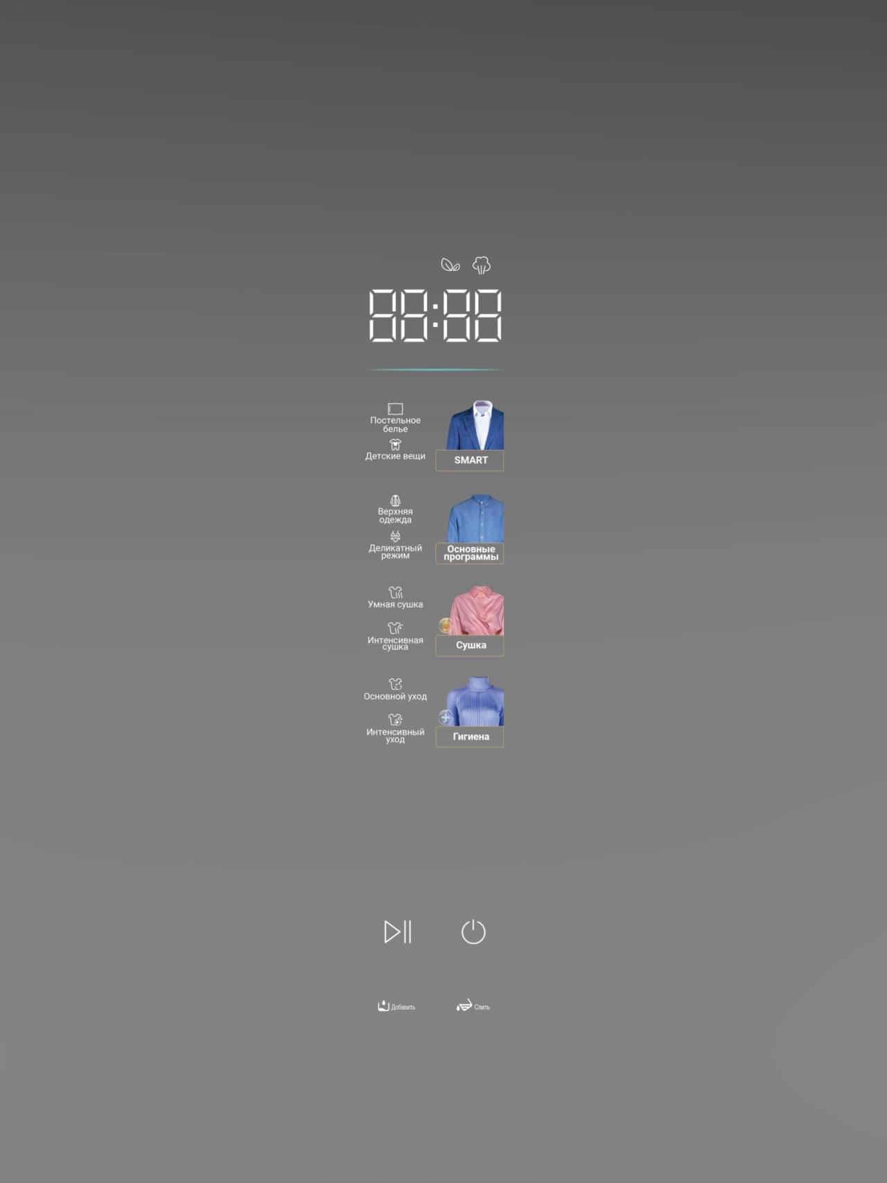 Управление интуитивное и современное: сенсорное управление и цветной дисплей делают настройку программ простой и наглядной, низкий уровень шума — до 63 дБ позволяет пользоваться шкафом даже вечером. LED-подсветка облегчает загрузку, а встроенная ароматизация придаёт лёгкий «весенний» оттенок свежести.