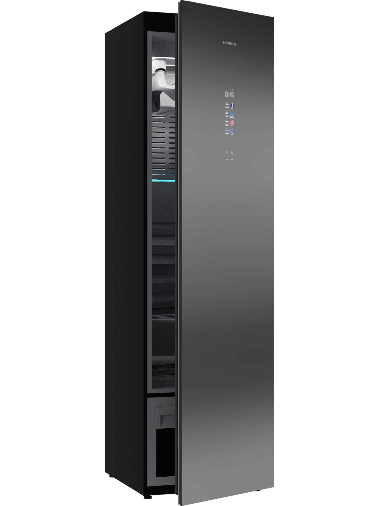 Фасад из сдержанного серого стекла гармонично вписывается в минималистичные и современные интерьеры. HIBERG SD 5GM помогает поддерживать порядок и свежесть гардероба ежедневно — легко, аккуратно и с заботой о тканях.