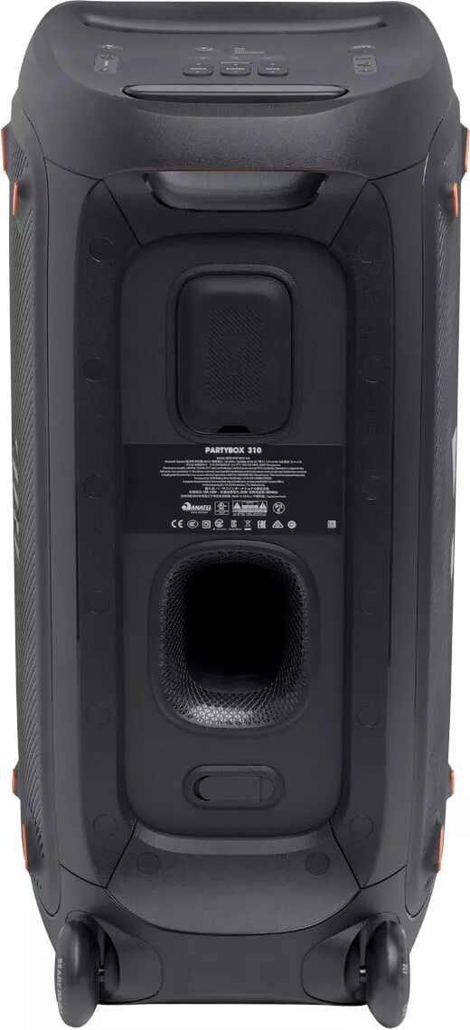 JBL PartyBox 310 позволяет организовать вечеринку в переносном формате - барбекю на заднем дворе, пляжную вечеринку и в других местах. Телескопическая ручка, встроенные мягкие колесики и влагозащищенная конструкция, защищенная по стандарту IPX4, благодаря которой динамик готов к работе в любом месте, в дождь или в солнечную погоду. PartyBox 310: вечеринка может быть перенесена на совершенно новый уровень. Динамик совместим с большинством подставок для колонок, а поднятие динамика в воздух улучшит воспроизведение звука, как показано на рисунке. Кроме того, динамик оснащен аудиовходами для микрофона и гитары, так что вы можете организовать караоке-вечеринку или собраться с друзьями. Встроенная настройка вокалиста обеспечивает действительно отличный звук.