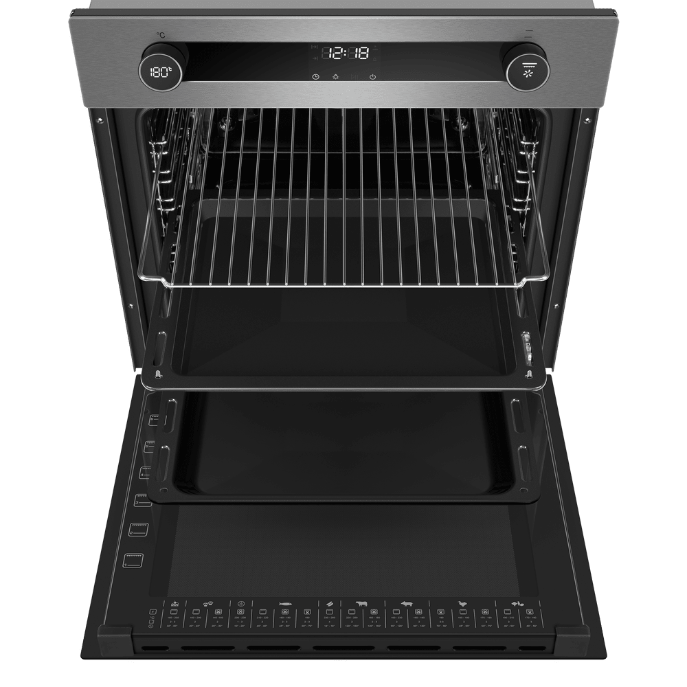 Объём духовки позволяет готовить большой семье или принимать гостей, не занимая лишнего места на кухне — габариты у модели стандартные. Режимы вроде расстойки теста и авторецептов расширяют возможности, а современное электронное управление делает процесс интуитивным и приятным каждый день.