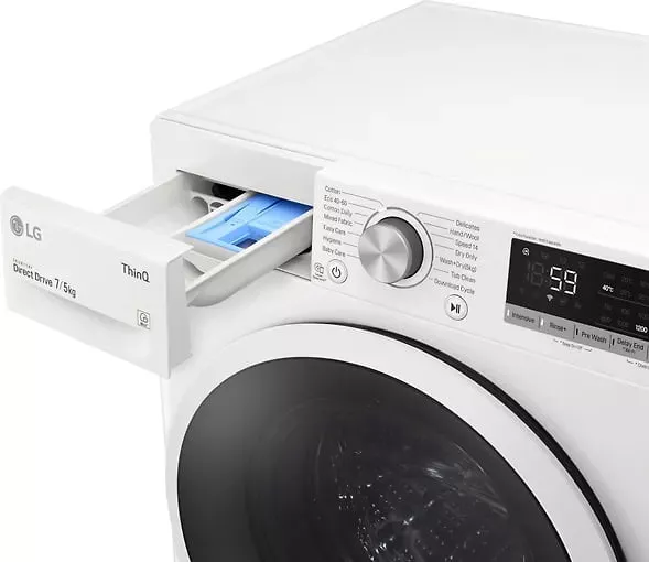 Если вам нужна сушильная стиральная машина с глубиной меньше, чем у обычной сушильной стиральной машины, то вам нужно обратить внимание на этот отличный вариант от LG. Глубина машины составляет всего 47,5 см (без дверцы), но, тем не менее, объем машины для стирки составляет 7 кг, а для сушки - 5 кг. С помощью одной машины, которая выполняет как стирку, так и сушку, вы экономите как пространство, так и деньги. Если вы живете в маленькой квартире или у вас маленькая ванная комната, это отличный вариант для вас.
