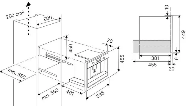 • Размеры ниши для встраивания (В×Ш×Г): 450 × 560 × 550 мм