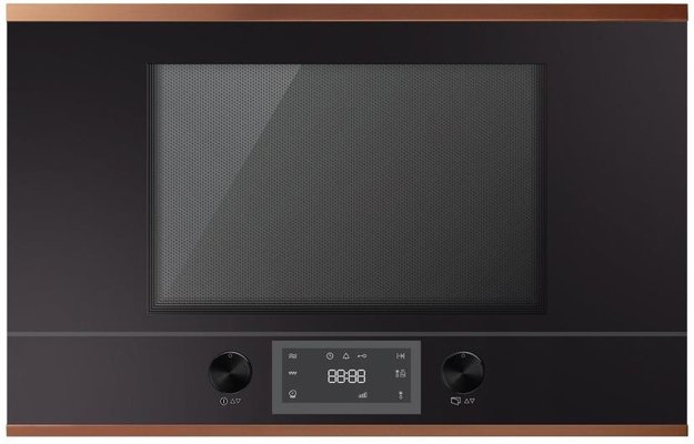 Встраиваемая микроволновая печь Kuppersbusch ML 6330.0 S7 Copper выполнена в классическом черном цвете с элегантной медной отделкой. Отсутствие ручки подчеркивает минималистичный дизайн. Компактные габариты позволяют встроить прибор в нишу 37×56.8×32 см.