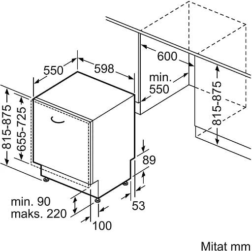 Размеры места установки В х Ш х Г (мм): 815-875 х 600 х 550